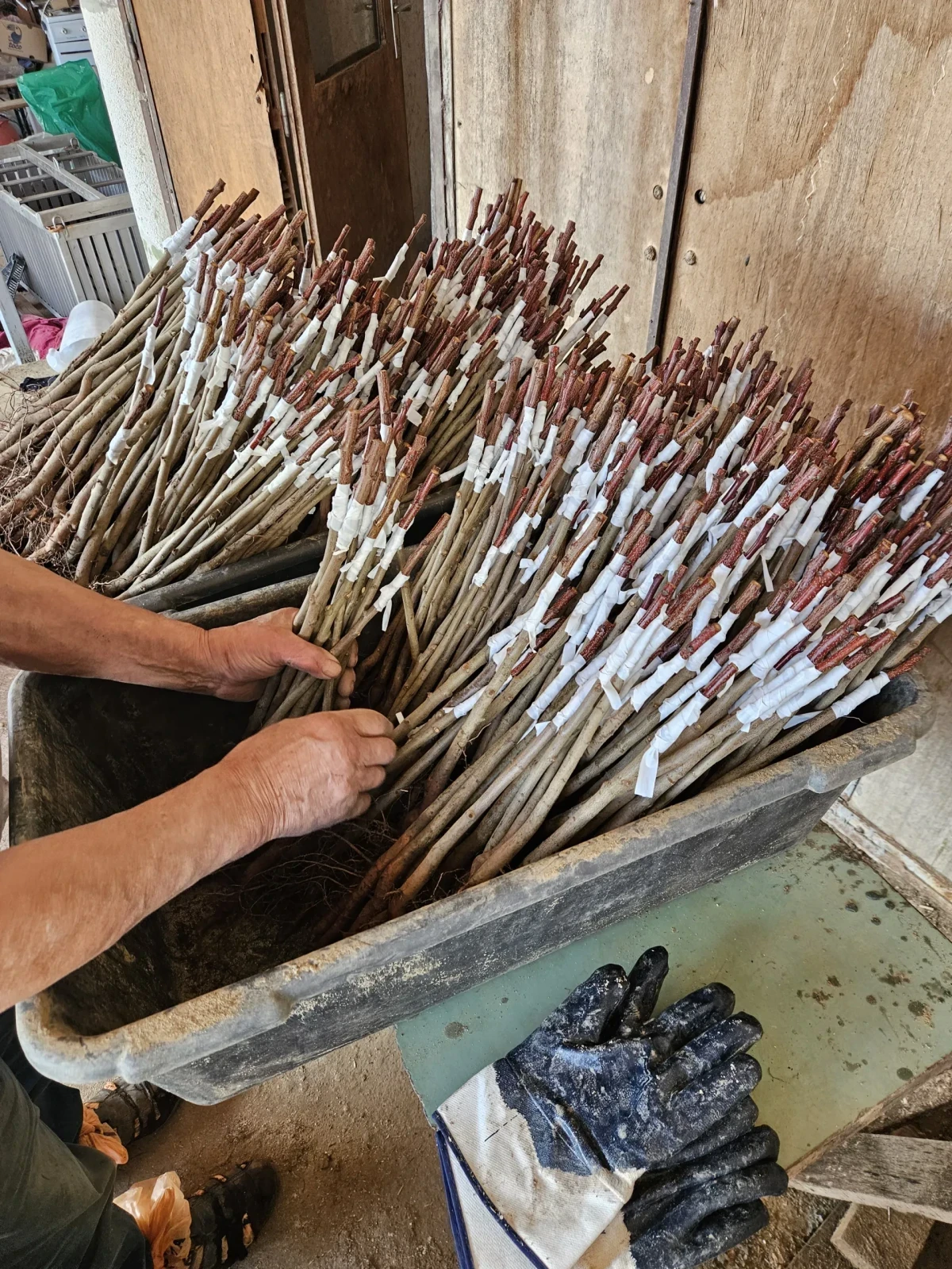 - root packed with wet sawdust and wrapped with PVC foil